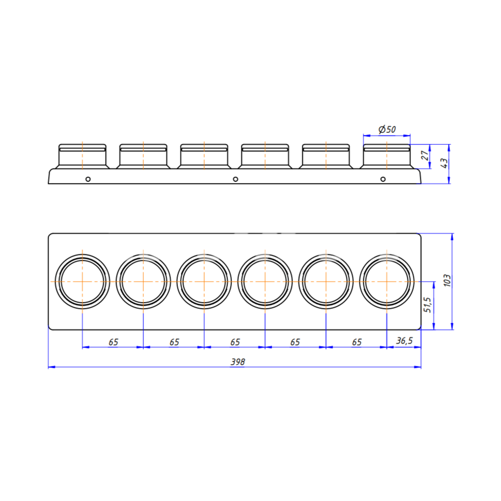 RC-U06126, панель передняя, 6 отв. Ø 50 мм. для BEU404-000