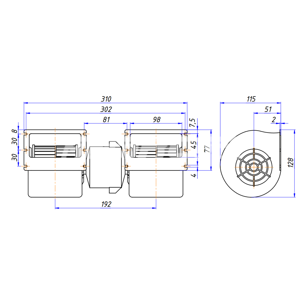 RC-U01474, вентилятор радиальный, 24V, 208W, с бесщеточным электромотором, аналог WZHF2601-1
