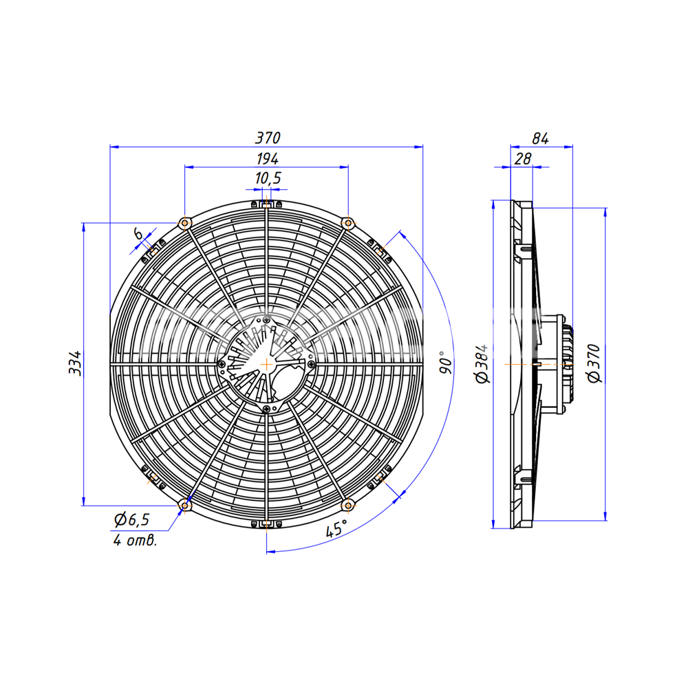| Диаметр по корпусу | 384 мм. |